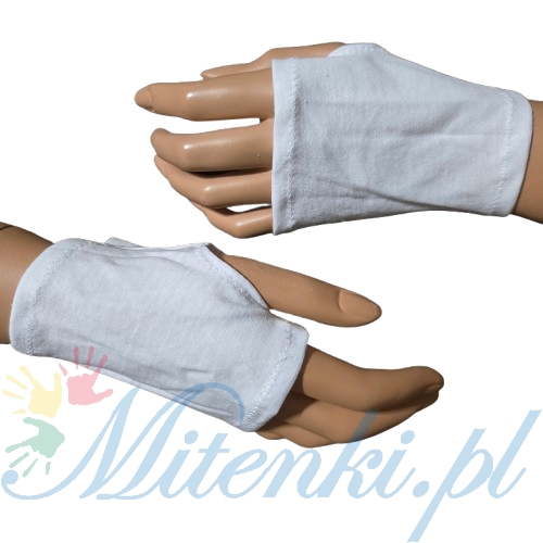 Bawełniane mitenki na kciuk biała dzianina 10 cm
