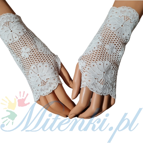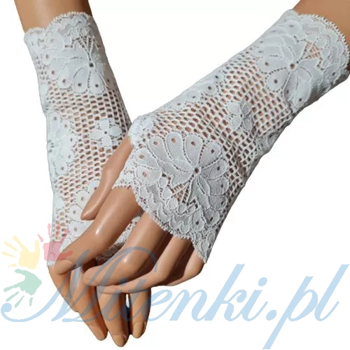 Mitenki zakładane na kciuk wykonane z wysokogatunkowej elastycznej masywnej koronki z lycrą.
