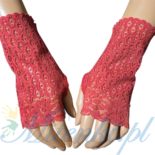 Mitenki zakładane na kciuk wykonane z wysokogatunkowej elastycznej mięciutkiej koronki z lycrą.