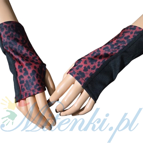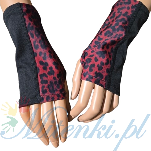 Czarno czerwone mitenki na kciuk panterka 15 cm