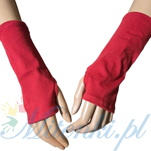 czerwone mitenki na kciukmitenki z czerwonej dzianinyelastyczne czerwone mitenki
