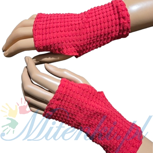 Krótkie mitenki na kciuk z gufrowanej elastycznej dzianiny.