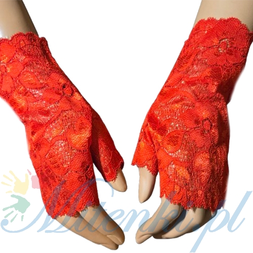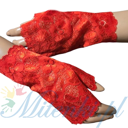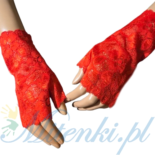 Intensywnie czerwone mitenki z jednym palcem - kciukiem.