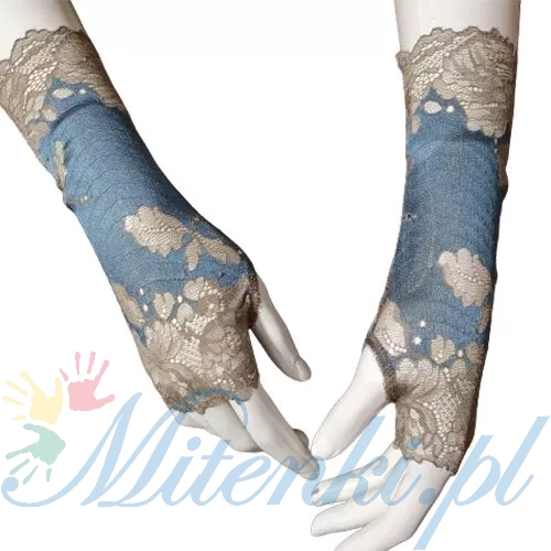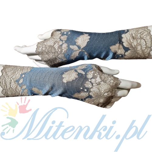Mitenki wykonane z cudnej kwiatowej elastycznej dwukolorowej koronki.