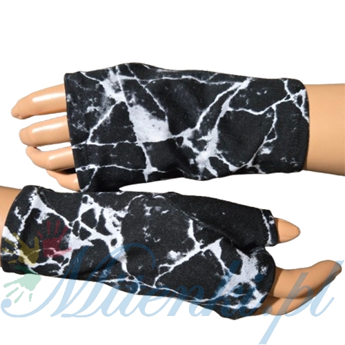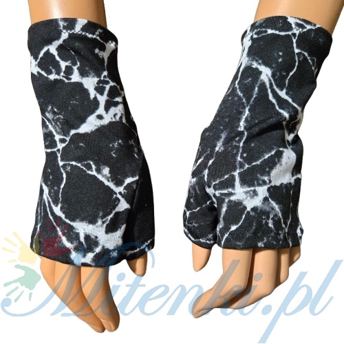 Mitenki z jednym palcem w biało czarne nieregularne wzory.