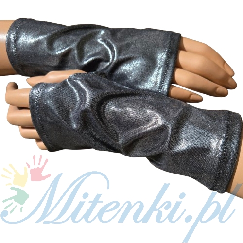 błyszczące mitenki srebro czerń