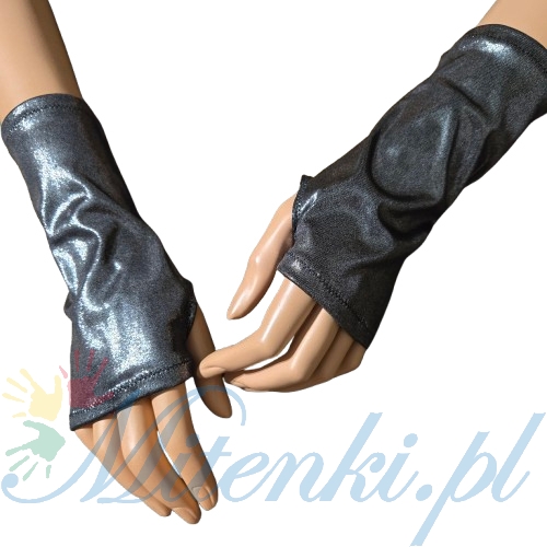 błyszczące mitenki srebro czerńsrebrne mitenki na kciukmitenki na imprezę