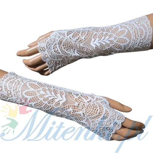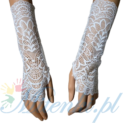 Mitenki zakładane na kciuk wykonane z wysokogatunkowej elastycznej koronki z lycrą.