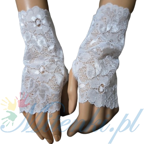 Wykonane z elastycznej białej koronki z lycrą w kwiaty.