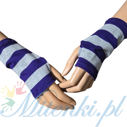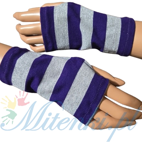 mitenki na kciuk w paski fiolet szary