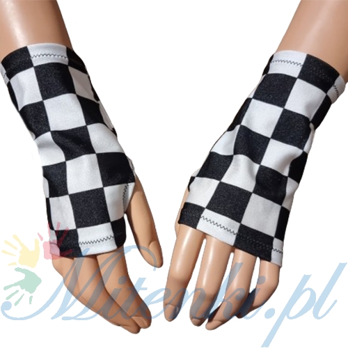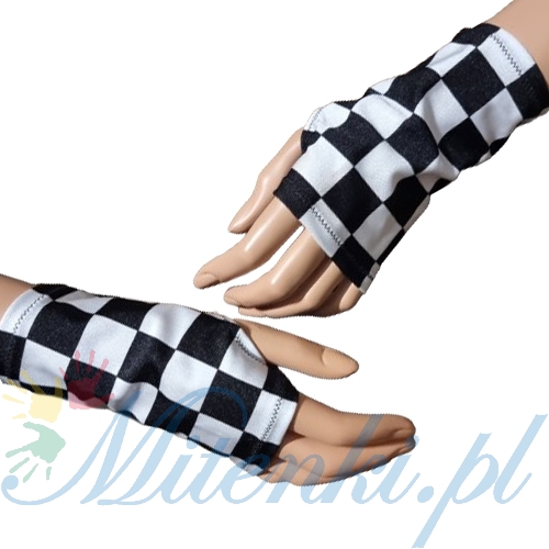 mitenki szachownicabiało czarne mitenki na kciuk