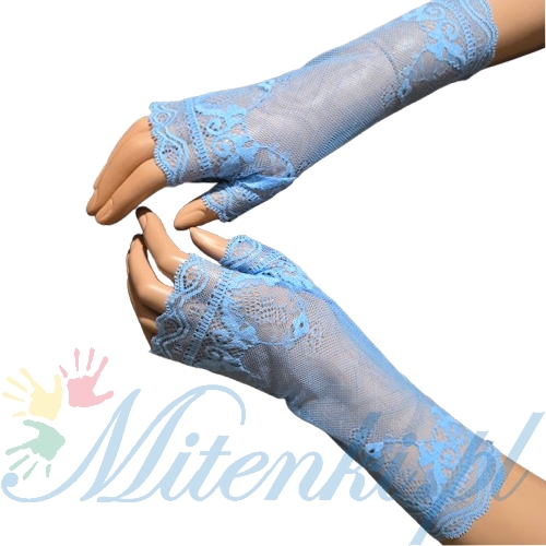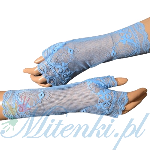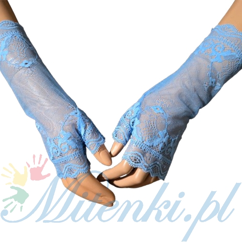 Finezyjne błękitne mitenki z jednym palcem - kciukiem.