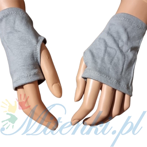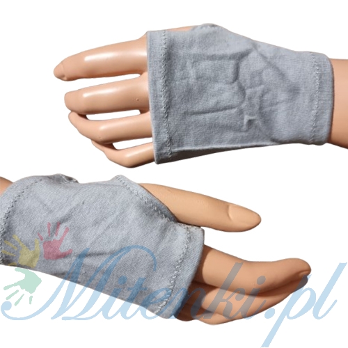Króciutkie mitenki zakładane na kciuk w popielatym kolorze.