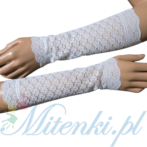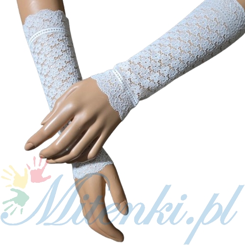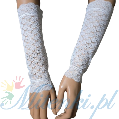 Strona główna » RĘKAWKI » Wąskie rękawki z koronki ecru kwiaty do ślubu 23 cm
