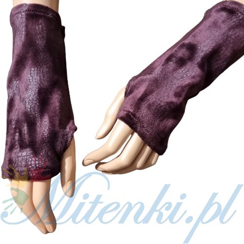 Strona główna » MITENKI NA KCIUK » Welurowe aksamitne mitenki na kciuk bordo a'la skóra krokodyla 18 cm