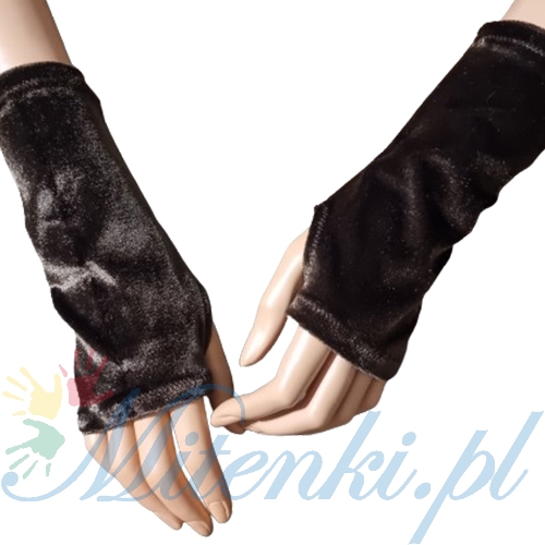 Aksamitne brązowe mitenki zakładane na kciuk 18 cm.