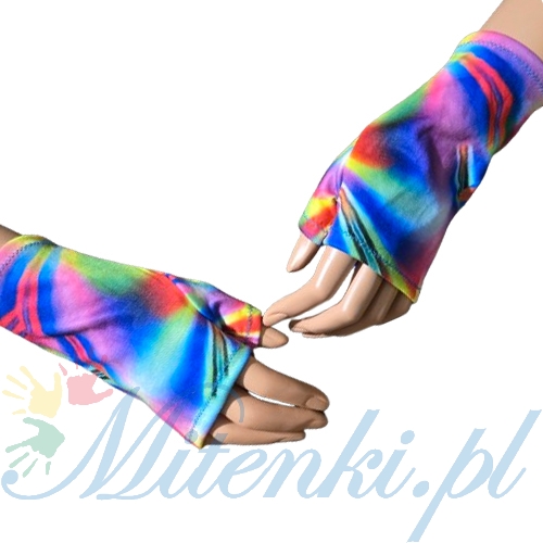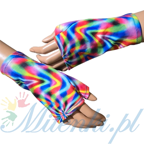 Wielobarwne wesołe rękawiczki z jednym palcem - kciukiem.