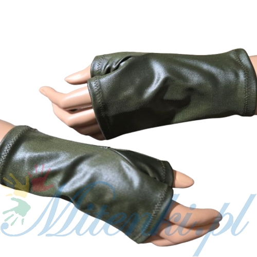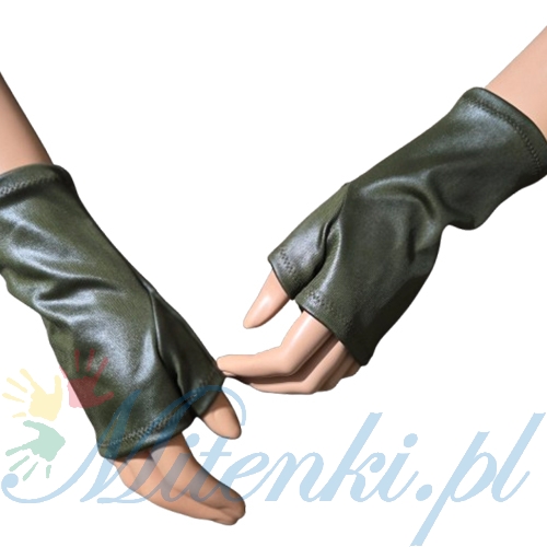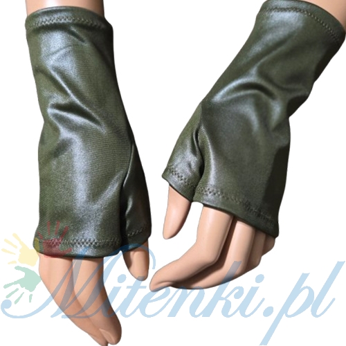 Mitenki z jednym palcem w kolorze ciemnej zgniłej zieleni .