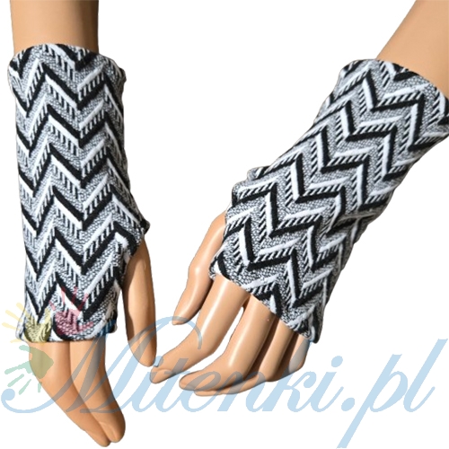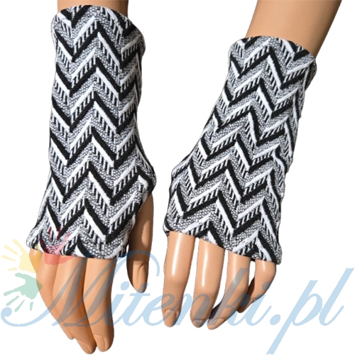 Zimowe mitenki damskie na kciuk czarno białe 15 cm